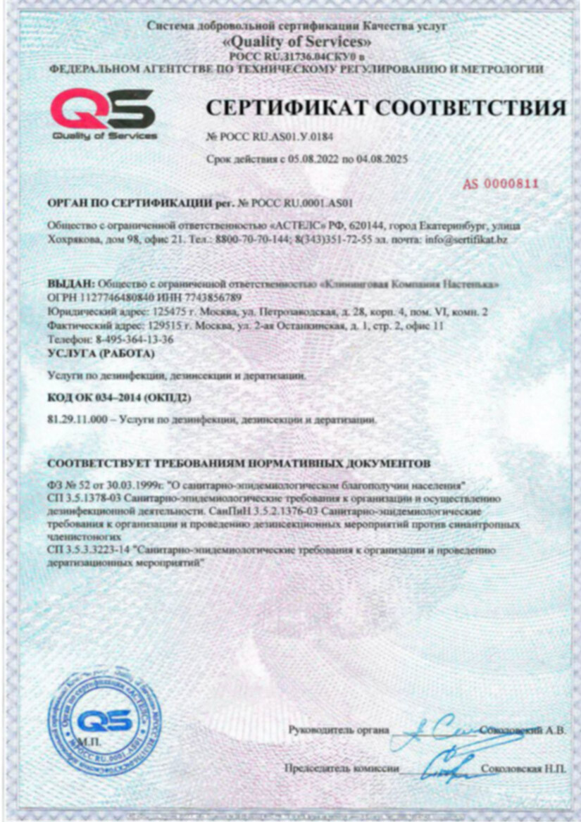 Наше оборудование и квалифицированный персонал гарантируют высокое качество дезинфекции, дезинсекции и дератизации. Мы соблюдаем все нормы гигиены и санитарии, обеспечивая безопасность и комфорт клиентов.